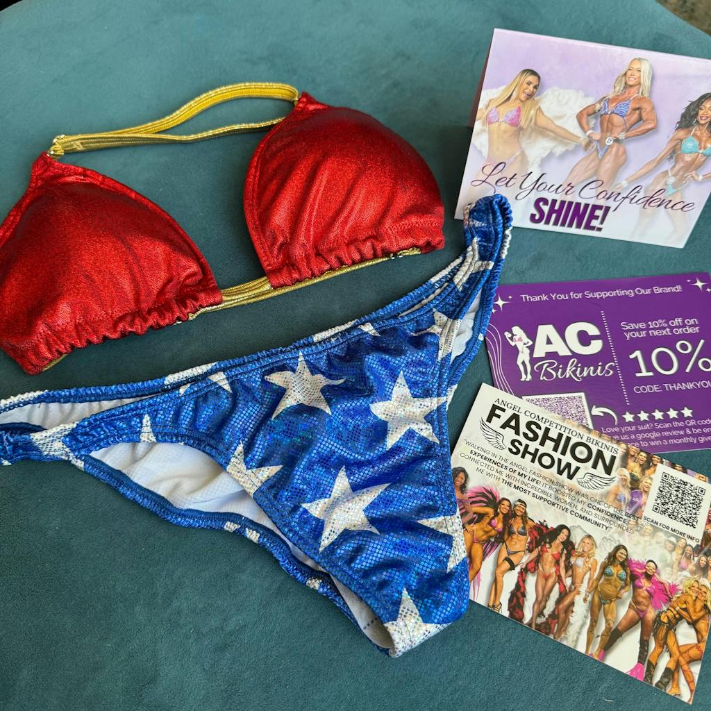 I purchased my bikini from Angel for my second show. What a dramatic difference! The quality, the color and support is beyond amazing!