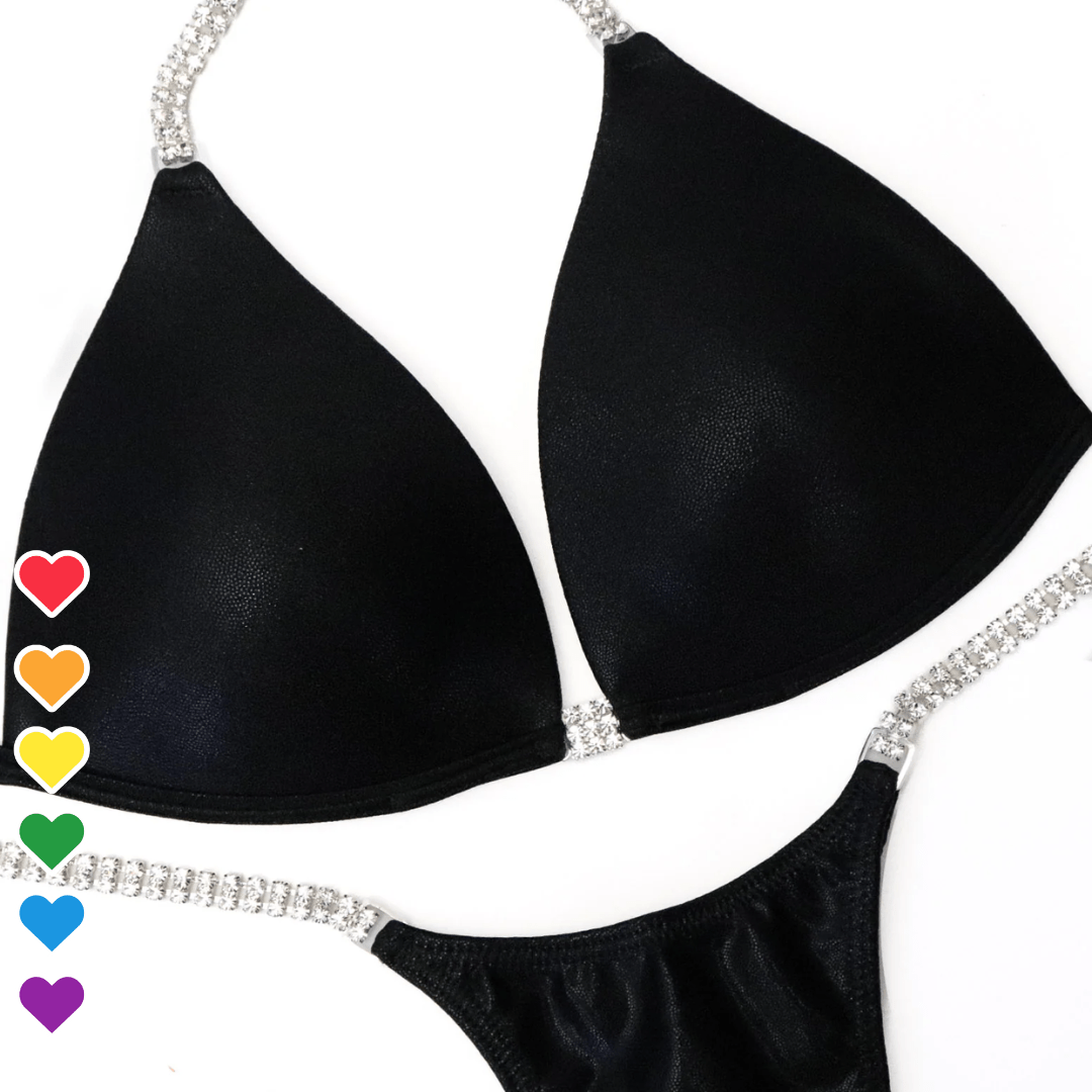Heather D. My bikini is perfect. Gorgeous material. Fit is perfection. So pleased! I will be getting my stage suit from here for sure!!