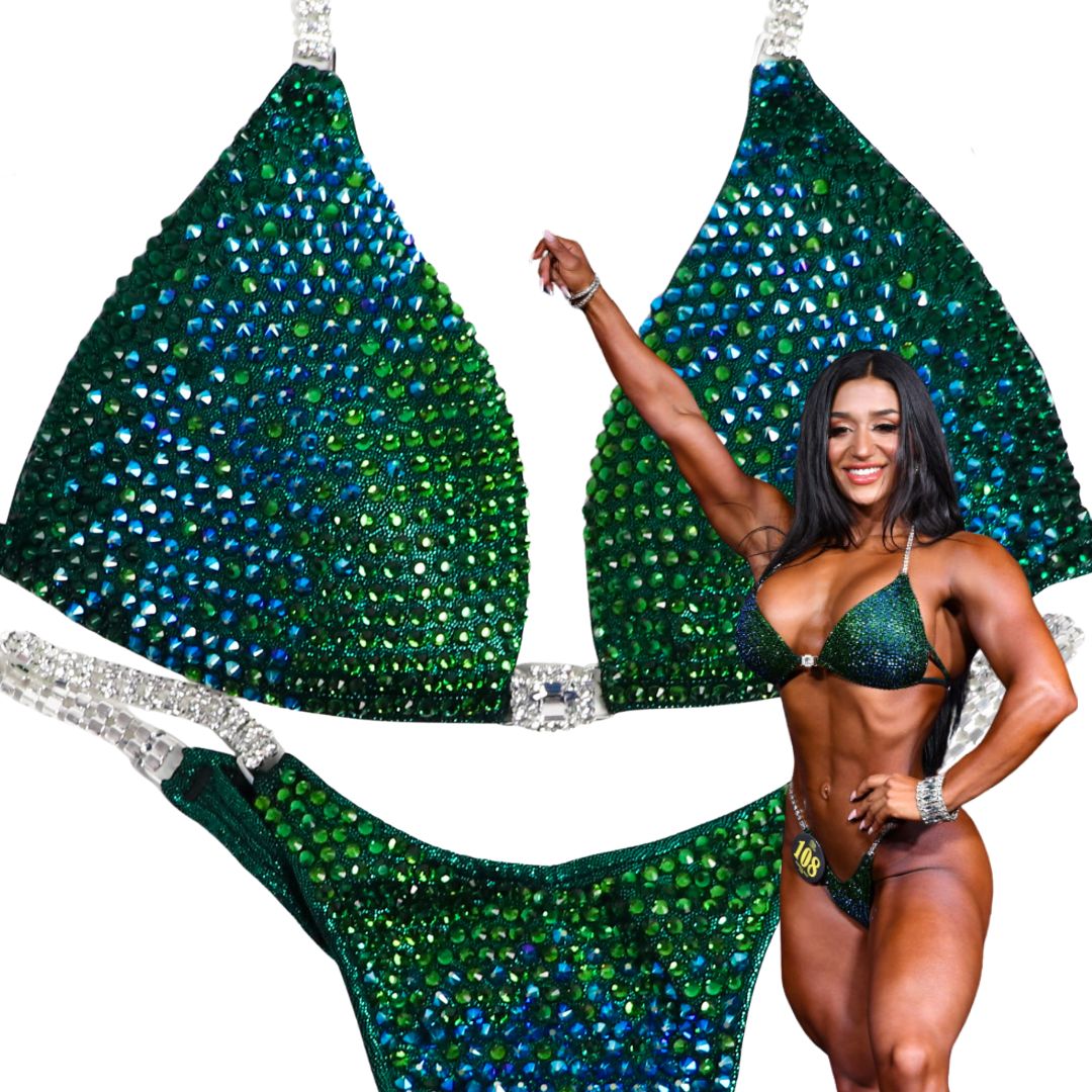 Loved this blue Diamond Trinity suit. The gem ombre gave me such a mermaid vibe I had to match my nails and eyeshadow to it! For a first suit (and first time competitor) this was such a wonderful option to go with. I can't wait to invest in more suits as my competition journey grows!! <3