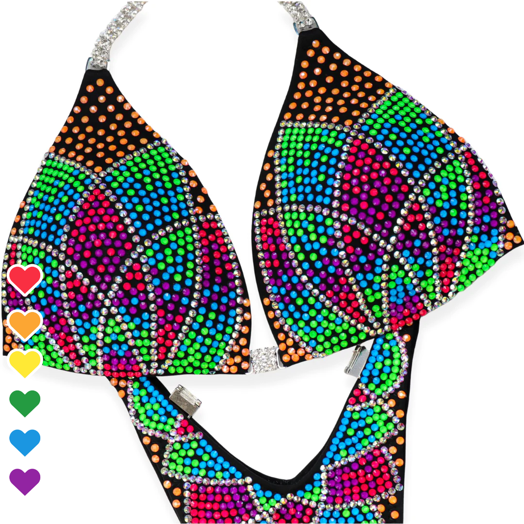 Ignite your stage presence with the Crystal Phoenix, a dazzling crystallized competition bikini designed for NPC bikini competitions. This suit’s intricate crystal pattern in fiery hues of red and orange radiates strength and confidence, accentuating every detail of your physique for a striking impact under the spotlight. Built for the serious bikini bodybuilding competitor, the Crystal Phoenix is a bold, unforgettable choice that ensures you’ll command attention and exude unstoppable confidence.